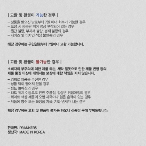 *해당 경우에는 교환 및 반품, 환불이 불가능 하오니 신중한 구매 부탁드립니다.